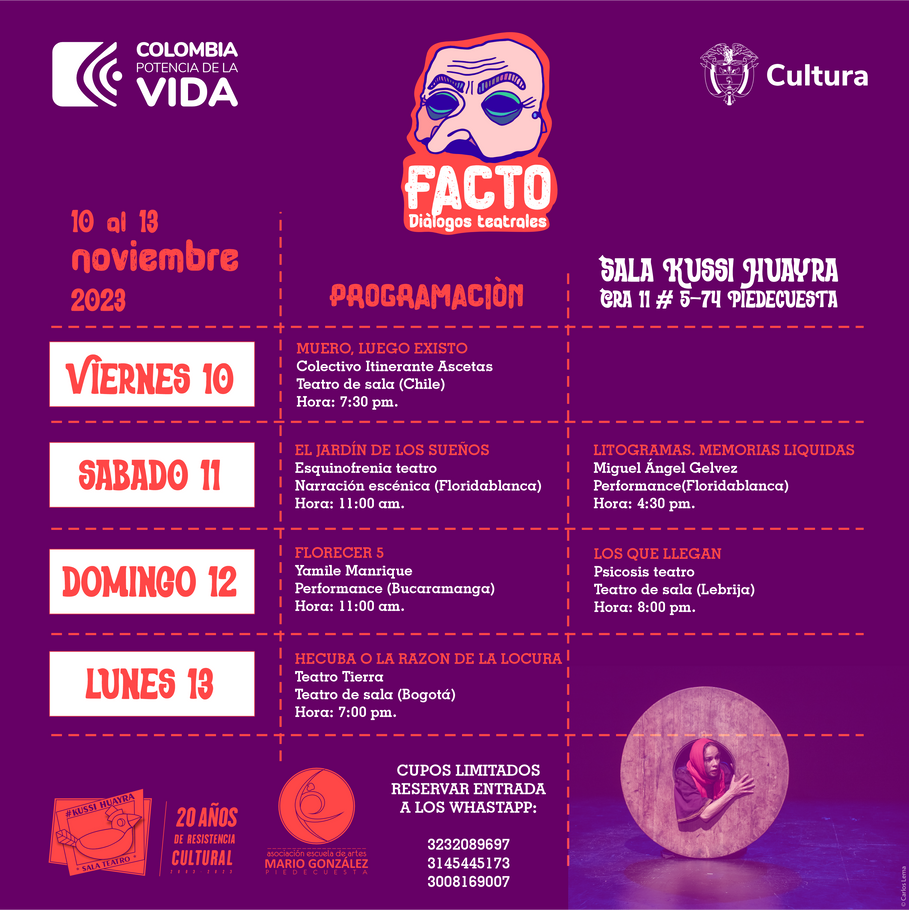 Estamos comprometidos con la socialización y circulación de productos teatrales profesionales en aquellos sitios y regiones de nuestro país donde la oferta teatral es escasa pero donde la diversidad y riqueza cultural son infinitas. Explorando y confrontando la obra con públicos de territorios inhóspitos, con dolores insondables, pero ávidos de sueños, y de ilusiones.